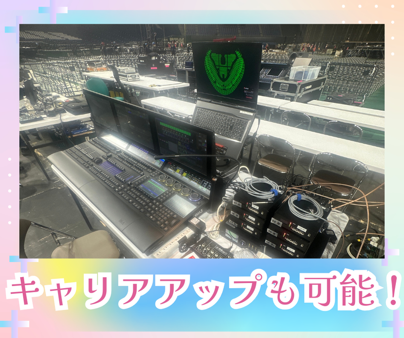 仕事内容 【✨光でライブを彩る演出の仕掛け人✨】 当社は、ライブ現場で使用される光による客席演出システムソリューションや 無線制御仕様のFANLIGHTを開発·運営している専門企業です。 日本国内トップクラスのシェアを誇り、年間200回以上の大型ライブで採用! 観客のペンライトを一斉に光らせてアートを描くなど、最先端の無線演出で数多くのライブを成功させてきました。 【仕事内容】 ライブ演出のスケジュール管理、機材手配、当日の現場ディレクション(進行管理)をお任せします。 イベント成功の裏側を守る大切なポジションです! ※基本的に複数案件を並行して担当します。マルチタスクが得意な方に最適です♪ ~具体的には~ ▼アーティストのライブ演出内容を確認 ▼当日に向けて必要な機材手配、進捗管理、人員手配 ▼当日は現場に出向いて進捗確認、機材搬入出の管理 ▼イレギュラーがあればプランニングを調整し、現場スタッフと協力して解決 ◎一人で抱え込まず、現場の照明演出メンバーと相談しながらチームで成功へ導きましょう! \\ この仕事の3つの魅力 // ✅全国ツアーに同行!オフも充実♪ アーティストと一緒に全国を飛び回ります!業務後は自由時間。 「明日に備えてホテルで休む」もよし、「仲間と飲みに行ったりご当地グルメを楽しむ」もよし。 地方ならではの楽しみがあります。 ✅20代・30代がメインの職場! 現場では機材搬入などの力仕事もあるため、フットワーク軽く動ける方が活躍しています。 社員は20代~30代が中心(最年長先輩も29歳)なので、堅苦しい上下関係はありません。 ✅キャリアパスも自在◎ 現場を知り尽くした後、適性や希望によって「照明オペレーター」等への転身も可能◎ <ライブ実績はHPでチェック!> https://pikabon.com/ 【採用担当より】 国内ライブ市場でトップクラスのシェアを持つ当社だからこそ、名だたるアーティストのライブ演出に携わった実績も多数。多くの人に注目されるようなスケールの大きい仕事に関わることができるのは、この仕事ならではの醍醐味です。「好き」という気持ちを、自分の想い描く形で表現できる経験とスキルを培いませんか。