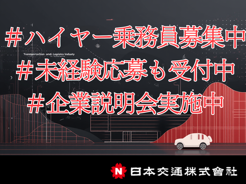 仕事内容 はじめまして。 日本交通株式会社 採用担当です。 ハイヤードライバーとして ご活躍いただけるのではないかと思い、 スカウトメールをお送りいたしました。 今回ご案内させていただくのは =============== ・月給40万円の給与保証 ・営業の必要なし/ノルマなし ・業界最大手のリーディング企業 ・職種未経験でも活躍できる研修制度 =============== やりがい・待遇ともに充実している ハイヤードライバーのポジションです。 日本交通は、お客様に最高の移動空間を提供することを目指しています。 特に、ブランドハイヤーは、法人契約を結んでいる企業様の役員の方や、 特別なゲストをおもてなしする、まさに「ホスピタリティの最先端」を追求するお仕事です。 接客の経験が無くても問題有りません! 所属社員の95%は未経験者です。 運転を通じて、お客様に感動を与える サービスを創り上げていきませんか? ────────────────── 🌸◢◤日本交通について◢◤🌸 ────────────────── 1928年の創業以来、東京を中心に首都圏、関西圏各地で 約10,000台のハイヤー・タクシーを運行する、 業界最大手の企業です。近年はタクシーGOなど、 ITと交通の融合を実現し、更なる成長を遂げています。 長年の歴史と実績を誇りお客様からの信頼も厚く、 安定した経営基盤を築いています。 自社で研修センターを保有しているため、 未経験から活躍される方も多数いらっしゃいます。 ────────────────── ◢◤スカウトポジションについて◢◤ ────────────────── 今回募集させていただくのは、 銀座・赤坂・日本橋エリアを拠点とする ブランドハイヤーの乗務員です。 主な業務は、法人契約を結んでいる 企業様の役員の方や、スペシャルゲストを 目的地まで安全かつ快適にお送りすることです。 具体的には、 * お迎えに上がった際に、ドアを開けてお待ちする * 静かな運転を心がけ、移動中も顧客がリラックスできる空間づくりをする * 確実に時間に間に合わせる、など お客様に最高の移動体験を提供するための 様々な工夫を凝らしていただきます。 運転時間は1日2~4時間程度で、待機時間は 目的地までの経路確認や、お客様に 必要な情報のリサーチなどを行います。 待機中は読書や仮眠なども可能ですので、 無理なく働くことができます。 また、月給40万円の保証もあり、 安定した収入を得ながら、 ホスピタリティを極めることができる、 やりがいのあるお仕事です。 ────────────────── ◢◤働くメリット◢◤ ────────────────── 日本交通では、社員一人ひとりが 安心して長く働けるよう、 充実した福利厚生制度をご用意しています。 * 資格取得支援(ホームヘルパー、TOEIC等) * 保養所 * サークル活動 * 二種免許取得費用会社負担※当社規定による * 24h入浴可能な浴室・仮眠室(和室/洋室) * 喫煙所有 * リロクラブ加入 * 財形貯蓄 * 選択制確定拠出年金 これらの福利厚生制度を活用することで、 仕事とプライベートを両立させながら、 充実した生活を送ることができます。 ────────────────── ◢◤研修制度について◢◤ ────────────────── 業界トップクラスの充実さを誇る 日本交通の研修制度。 なので、活躍している社員の95%は 職種未経験者です。 *導入研修後:運転時の基礎知識 ⇒接客マナーや運転技術をマスター ◎入社~2ヶ月 *導入研修後:運転時の基礎知識 ⇒接客マナーや運転技術をマスター *同乗・路上研修:主要ルートやプレミアムな運転技術を習得します。 ◎営業所研修:実践的な研修を行います。 ※研修が終わるまで約4ヶ月程度。 丁寧な研修は業界でも有名です! もし少しでもご興味をお持ちいただけましたら、 ぜひ一度お話させてください。