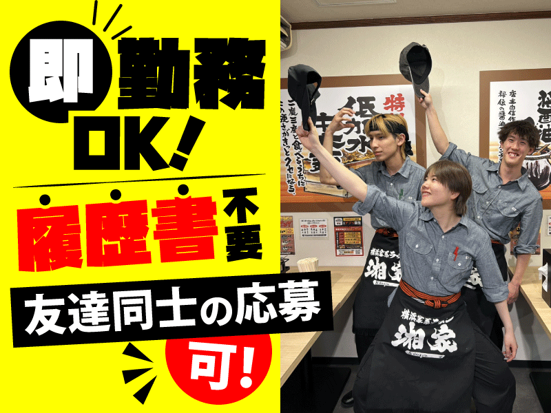 仕事内容 5月にリニューアルしたばかりの ピカピカなお店で、 新しい仲間を大募集✨ ■■■■■【 急 募 】■■■■■ ⏩10時からのランチ帯 ⏩夜~ラストの遅番 →上記の時間帯で入れる方大募集! ■■■■■■■■■■■■■■■■■ 元気な挨拶ができれば 未経験でも全然OK! 堅苦しいルールはナシで、 楽しく働けるのが自慢です☆ ✅お仕事内容  ̄ ̄ ̄ ̄ ̄ ̄ ̄ ̄ ̄ ̄ ̄ ̄ ̄ ̄ ̄ ・お席へのご案内 ・オーダーの受付 ・料理やドリンクの提供 ・テーブルの片付け ・お会計のフォロー ・店内清掃 など、お任せします♪ 最初は先輩スタッフが マンツーマンで教えるので 安心してくださいね✨ ⌛10時開始で朝はゆっくり*  ̄ ̄ ̄ ̄ ̄ ̄ ̄ ̄ ̄ ̄ ̄ ̄ ̄ ̄ ̄ 「早起きはちょっと苦手…」 「朝は家事でバタバタする」 そんな方にぴったり! ランチ帯は10時スタートだから 洗濯物を干してから、 あるいはゆっくり寝てから 余裕を持って出勤できちゃいます♪ ❕深夜は時給UPで稼げる◎  ̄ ̄ ̄ ̄ ̄ ̄ ̄ ̄ ̄ ̄ ̄ ̄ ̄ ̄ ̄ 「昼間は別のことしたい」 「夜型生活なんです」 という方は遅番がオススメ☆ / 22時以降は時給が25%アップ✨ \ 少ない日数でも 効率よく稼げちゃうのが 深夜バイトの嬉しいところ♪ ˆˇˆˇˆˇˆˇˆˇˆˇˆˇˆˇˆˇˇˆˇˆˇˆˇ <この求人のポイント> ⭐主婦(夫)・フリーター活躍中! ⭐《うれしい》まかない無料! ⭐週2日~勤務OK! ⭐履歴書不要 ⭐無理な残業・シフトの強制はナシ! ˆˇˆˇˆˇˆˇˆˇˆˇˆˇˆˇˆˇˇˆˇˆˇˆˇ ╭━━━━━━━━━━╮ こんな方にピッタリ♪ ╰━v━━━━━━━━╯ ・朝の時間を有効活用したい方 ・家事の合間に働きたい主婦(夫)さん ・遅番でガッツリ稼ぎたい方 ・ラーメンが大好きな方 ・堅苦しい職場が苦手な方 ・髪色自由で働きたい方 未経験の方も大歓迎♪ 先輩たちが優しく丁寧に サポートしますので 安心してご応募ください✨