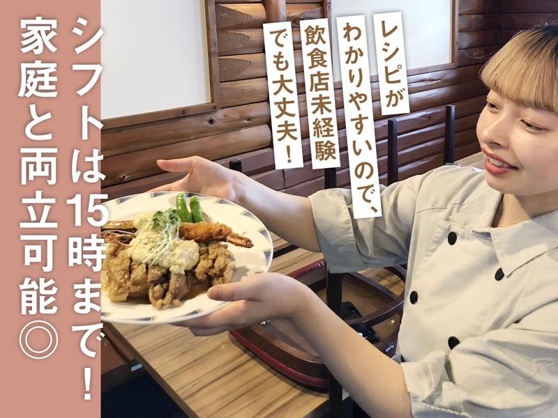 仕事内容 \フレンチシェフが手がける洋食屋さん/ 昨年オープンしたばかりの新しいお店で、 ログハウス風の温かい雰囲気が魅力的♪ 主婦の方やWワークの方が活躍中! 従業員はみんな20代の女性です。 【お仕事内容】 ・調理 ・仕込み ・料理の提供 ・洗い物 ・レジ業務 などをお任せします。 ランチメニューは、 ・ハンバーグ ・チキン南蛮 ・ポークカツ ・ミックスフライ の4種類だけ! 「いろんなメニューを覚えなきゃ…」 という心配は不要です。 シェフが未経験者向けに簡単に覚えられる レシピを考案しています。 普段から料理をするのが好きな方なら、 すぐに覚えられますよ♪ まずは具材を切る仕込みや接客から スタートなので、安心して始められます♪ ★勤務は14・15時まででOK! 夕方からは家事やプライベートの時間も 大切にできます◎