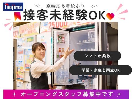 仕事内容 ノジマのお仕事とは!? 「新しい環境でいきなり長期はちょっと不安…」 そんな気持ちに寄り添って、 まずは3ヶ月の短期からスタートできるノジマのオープニング。 実際に働いてみて、 自分に合うかどうかを確かめてから長期に切り替えられるので安心。 無理なく一歩を踏み出せる環境をご用意しています!! - 【こんなお仕事です】 お客様のお困りごとに寄り添い、最適な商品をご提案するお仕事。 家電や携帯は、外見だけでは違いが分かりにくいもの。 だからこそ、まずはお客様としっかり会話しながら、 「何が必要で、何が不要か」を一緒に見つけていくことから始めます。 【まずは短期からチャレンジ!】 オープニングだからこそ「合うか不安」という方も安心。 まずは3ヶ月の短期で働いてみて、 「ここで続けたい!」と思ったら長期に切り替えも大歓迎です。 【●接客未経験でも安心】 接客や販売が初めてでも大丈夫。 わかりやすく丁寧な研修があるので、安心してスタートできます。 異業種からの転職者も多数活躍中! マナーやコミュニケーション力など社会人スキルも自然に身に付きます。 入社する9割以上が未経験からなので心配はいりません。 - 【●ライフスタイルに合わせたシフト調整】 ・授業やサークル、試験期間も柔軟に考慮! ・勤務開始日も相談可能! 【勤務例】 ・平日中心に9:30~17:30まで ・学校終わりに17:00~21:30まで など あなたの生活リズムに合わせて働けます。 【●働きやすさも安心】 有給休暇・産休・育休制度など制度面も整っています。 能力や業績に応じて3ヶ月ごとに昇給のチャンス! 社員登用制度もあるので、将来は正社員を目指すことも可能です。 【先輩のサポート体制あり】 新人の気持ちを理解してくれる先輩が多数。 知識ゼロからでも、パンフレットやPOPを見ながら接客すればOK。 商品知識は少しずつ覚えていけば大丈夫です。 【365日24時間対応の動画面接可能!】 学業や家庭の事情で面接時間が取りづらい方も安心。 動画面接なら、自宅から私服でいつでも受けられます。 「すぐに面接したい」という方にもピッタリです!
