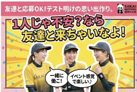 仕事内容 お客様が新しい生活を気持ちよく始められるようにお手伝いするアシスタントの仕事です 「ありがとう」の言葉を直接いただける、 やりがいのあるお仕事です。 学校やWワークとの両立もできる柔軟な働き方で、 チームで協力しながら安心して働けます。 2~5名のチームで協力し合い、 お客様の新居でのスタートをサポートします。 【主なお仕事】 ・正社員スタッフのサポート業務 ・ダンボールや小型家具の整理・配置 ・新居での荷物整理やセッティングのお手伝い ・台車を使った荷物の移動サポート ・トラックやエレベーター前での案内・フォロー ★未経験でも安心 まずは支社での研修からスタート。 現場では先輩スタッフが丁寧にフォローします。 笑顔での対応が何より大切なお仕事です。 ★初日は研修からスタート 支社で動画+実技研修(2~3時間/給与支給) 道具の使い方や段ボールの作り方も学べます 翌日から現場で勤務スタート可能! さらに「職場見学」もOK!休憩室やトラック見学など、 不安がある方も安心して応募できます。 先輩がしっかりサポート 現場には20代中心の若手スタッフが多く、初めての方にも慣れた先輩が丁寧にフォロー。 不安なことや困ったことがあれば、すぐに聞ける・頼れる環境が整っています。 【先輩スタッフの声】(一部抜粋) 「お客様に『助かりました!』と笑顔で言ってもらえた時にやりがいを感じます」 「接客の経験を積みながら、チームワークも学べるのが魅力です」 「研修と現場のサポートで安心して始められました」 勤務スタイルも柔軟です *土日だけ/週1日~OK *午前のみ・午後のみなど短時間OK(16歳・17歳の方は勤務時間最大6時間まで) *フルタイムでしっかり稼ぐことも可能 *シフトは毎日提出OK。予定に合わせて調整できます。 *日払い・週払い(規定あり)にも対応しています。 応募について 面接は1回のみ。履歴書不要。 WEBでも対面でも選べますので、ご都合に合わせてご相談ください。 AI面接対応で24時間いつでも面接可能です! 「まずは短期で試してみたい」「友達と一緒に働きたい」などのご希望も大歓迎です。 安心して始められる環境で、あなたのバイトデビューを応援します!