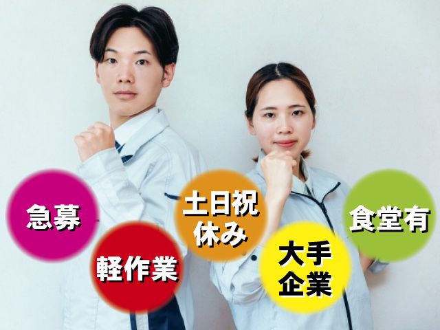 仕事内容 ▼このお仕事のポイント ・急募 ・正社員登用有 ・土日祝休み ・未経験可 ・軽作業 ・空調完備 ・大手企業 ・食堂有お弁当300円 ▼仕事内容 \NEW 新着求人!/ 人気の軽作業組立スタッフ大募集 男女活躍中正社員登用有 土日休み&大型連休あり&年間休日120日 〇アーチ派遣スタッフ多数ご活躍中 〇アーチスタッフから好評の人気の職場です 【主な業務内容】 (1)軽量部品・プラスチック製品を接着し、組み立てる (2)組み立てた製品を目視やルーペ等を使い簡易検査 (3)完成品の測定 ・冷暖房完備、清潔な快適な職場です ・座り仕事が多く、お体の負担はありません ・扱うものは軽量になり、女性でも安心して働くことができます! ・20代~40代幅広い年齢層の方ご活躍中 ・未経験OK初めての方にも丁寧にご指導しますので安心して下さい! ・土日祝休み、GW、夏季休暇、年末年始の長期連休あり、皆プライベートと両立しお仕事しています 【問合せ】 担当者:並木 TEL:070-1001-5231 株式会社アーチでは、入職前の事前現場見学も随時実施中 応募~就労まで最短2日から可能です。 【応募~入職までの流れ】 (1)ご応募(TEL・WEB) まずは話を聞いてみたいという方もお気軽にご応募ください。 ↓ (2)弊社担当よりご連絡・面談の日程調整 履歴書は不要です。 担当と仕事のことや休日、お給料など 気になっていることを面談でお伝えください。 また、出張面接・WEB面接も行っております。 ↓ (3)仕事内容の説明 条件にあったお仕事の詳しい業務内容などを 担当から細かくご説明させていただきます。 また、おすすめのお仕事も紹介させていただいております。 ↓ (4)職場見学 気になったお仕事に担当と一緒に事前に職場見学に行き、 仕事風景や派遣先担当の方に詳しいお話しを聞ける機会を設けております。 ↓ (5)仕事決定・就労開始 就業先決定後、入職日を決め契約書を交わし、お仕事開始となります。 お仕事開始後アフターフォローもある為、安心して働けます。 【福利厚生も充実しています】 ・有給休暇あり ・日払いOK(当社規定あり) ・交通費全額支給(規定あり) ・退職金制度あり(規定あり) ・正社員登用あり ・入職3年後無期雇用登用あり ・社会保険完備(健康・厚生・労災・雇用) ・キャリアアップ支援制度 ・資格取得支援制度(フォークやその他要望による) ・友達紹介制度 ・育休・産休・介護休暇・傷病休暇(規定あり) ・健康診断(年1回) ※夜勤帯の方は年2回