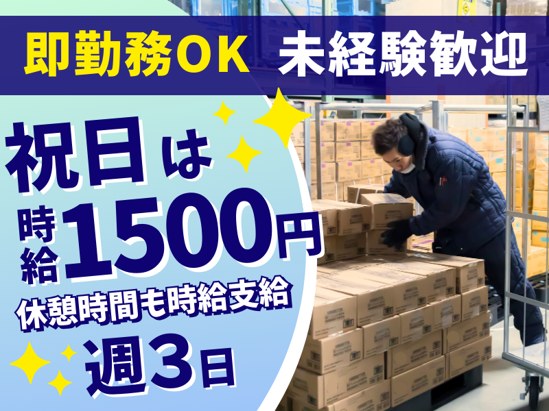 月火木の週3日!未経験歓迎!高時給1500円で仕分け作業◎