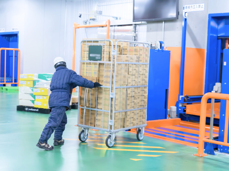 冷凍倉庫で箱商品の冷凍食品の軽作業スタッフ