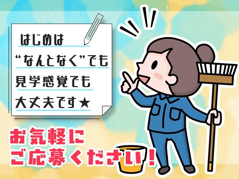 求めている人材 ◆年齢不問・経験不問 ◆女性活躍中!(女子更衣室、女子トイレ清掃あり) ◆フリーター歓迎 ◆副業・WワークOK ◆年金受給者の方も歓迎 ◆ブランクのある方も大歓迎 スタッフは皆、未経験からのスタートです! 研修もございますので安心して始められます♪ 無理なく続けたいフリーターさんにぴったり。 「人の役に立ちたい」という気持ちがあればOK! まずはお気軽にどうぞ✨ <こんな方も是非!> ✅かけもちで収入を増やしたい ✅短時間で効率よく働きたい ✅安定した場所で落ち着いて働きたい ✅接客少なめ・静かな環境が良い ✅夜遅いバイトは避けたい 皆さんお気軽にご応募ください!✨