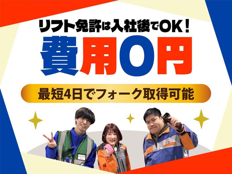 仕事内容 ★*★*★*★*★*★*★*★*★*★ *この仕事が選ばれている理由 TOP5 * ★*★*★*★*★*★*★*★*★*★ 【1】未経験スタートが“当たり前”  ̄ ̄V ̄ ̄ ̄ ̄ ̄ ̄ ̄ ̄ ̄ ̄ ̄ ̄ ̄ 元アパレル・飲食・接客などの 異業種出身がなんと「約9割」! 入社後にフォーク資格を最短4日で無料取得! 【2】自分らしいスタイルで働ける  ̄ ̄V ̄ ̄ ̄ ̄ ̄ ̄ ̄ ̄ ̄ ̄ ̄ ̄ ̄ 髪色・ネイル・ピアス・ひげOK 「見た目で判断されない職場」です✨ 【3】キレイで快適すぎる倉庫環境  ̄ ̄V ̄ ̄ ̄ ̄ ̄ ̄ ̄ ̄ ̄ ̄ ̄ ̄ ̄ カフェテリア、休憩室、 ウォーターサーバー完備 “職場っぽくない職場” という声多数◎ 【4】日勤固定でプライベートが整う  ̄ ̄V ̄ ̄ ̄ ̄ ̄ ̄ ̄ ̄ ̄ ̄ ̄ ̄ ̄ ̄ 8:00〜17:00/残業少なめ 夜勤ナシだから生活リズムも安定! 【5】しっかり稼げて安定  ̄ ̄V ̄ ̄ ̄ ̄ ̄ ̄ ̄ ̄ ̄ 賞与年2回・残業代全額支給 家族手当や結婚祝い金など充実の各種手当✨ 1年目でも年収348万円〜可能! ✅どんなお仕事? 大手ECの商品を扱うキレイな物流倉庫で、 フォークリフトを使ったカンタン作業! ▼扱うのは飲料が中心(約9割)▼ 大きさ・重さが安定していて、 未経験でも扱いやすい商品です ▼具体的には▼ ・入荷した商品の棚入れ ・各フロアへの運搬・引き渡し ・出荷商品の仕分け・整理 ※リーチリフト/ピッカーを中心に使用 倉庫内は無線連携で作業がスムーズ。 ピッと操作して進める“最新倉庫”での仕事! ✅未経験でも安心!育成ステップ ▼入社後の流れ▼ Day1:会社説明&安全講習 Day2〜5:フォークリフト講習(費用0円) Week2:先輩と一緒に練習 Week3:少しずつ運転デビュー! 約2〜3週間で「ひとりで運転できた!」 を実感できます。 先輩が横についてコツを教えてくれるので、 運転が初めてでも本当に大丈夫です* ✅こんな方が活躍中! ・初めて正社員になりました ・接客に疲れて、モクモク作業に惹かれた ・髪色自由+ちゃんと稼げる仕事がよかった ・資格を取って手に職つけたい ★20代&30代多数活躍中★ 雰囲気はかなりフラットで “友達みたいに相談できる先輩” が多い職場です。 ――――――――――――――――――――