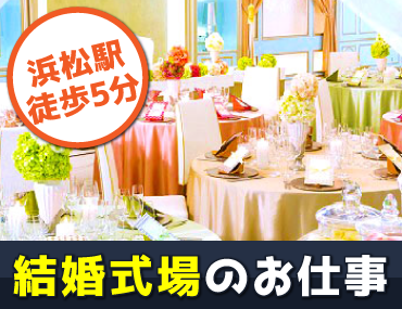 仕事内容 浜松市・田町の結婚式場にて、サービススタッフ大募集! お客様の大切な人生の節目を彩る やりがいと感動に満ちたお仕事です♪ 綺麗な空間で気持ちよく働けます! 未経験スタート大歓迎!! <具体的には> 結婚披露宴・パーティーなどの サービス全般のお仕事です。 会場のセッティングから片づけ、 お客様にお料理やお飲み物を提供したり 空いたお皿を下げるなどの業務をお願いします◎ <正しい言葉遣いや所作が身につきます> 仕事を通して、丁寧な言葉遣いや 身のこなしが身につけられます◎ 就活や自分磨きにもピッタリですよ♪ 未経験から始めたい方はもちろん、 接客経験者の方のスキルUPにも!