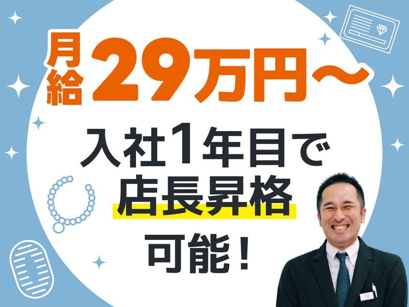 求めている人材 *学歴不問 *経験不問・資格不問 *未経験歓迎 *フリーター歓迎 *主婦(夫)活躍中 【必須】 ・簡単なPC操作(Excel)ができる方 【こんな方におすすめ】 ✓ 販売や接客など、人と関わる業務経験がある方 ✓ アパレルや販売職の経験があり、個人目標に疲れた方 ✓ お客様に寄り添う接客がしたいと思っている方 ✓ 「売る」ためではなく、「喜んでもらう」ために働きたい方 ✓ 専門スキルを身につけて、キャリアアップしたい方 ✓ チームワークを大切にできる方 ✓ 人の話をじっくり聞くことが好きな方 ✓ 働きやすさもキャリアも両立させたい方 ————————————— 半年で店長も目指せる! 明確なキャリアパス ————————————— 意欲があれば、昇進のチャンスは開かれています。 店長やエリアマネージャーを目指したい方には、しっかりとしたキャリアパスを用意。 例えば、入社3年目のスタッフは、入社半年で店長に就任。 その後も実績と後輩育成にも尽力し、現在は複数店舗を統括するポジションまで昇進しました。 もちろん、全員が店長を目指す必要はありません。 「接客のプロとして、お客様と向き合い続けたい」という道も尊重されます。 管理職を目指すのも、スペシャリストとして極めるのも、あなた次第。 会社は、あなたの「なりたい姿」に合わせて、柔軟にサポートします。