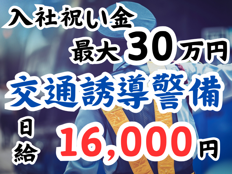 仕事内容: オープニングの今だけ限定で日給アップキャンペーン実施中! 入社祝い金として最大30万円支給! この条件で経験者採用をかけるのは、今のこのタイミングだけ! 「どうせ働くなら、少しでも条件がいいところで働きたい」 そんな警備経験者の方にこそ見ていただきたい募集です。 交通誘導現場のリーダー候補として働きませんか。 建築・工事現場を中心に都内に多数案件あり! これから立ち上げていく事業だからこそ、今回は経験者を強く求めています。 採用枠が埋まり次第終了となるため、少しでも気になった方はお早めにご応募ください。 日勤…日給16,000円~ 夜勤…日給18,000円~ ※1~25勤務までは、日勤14,000円、夜勤16,000円(祝い金1勤務につき2,000円含む×25勤務) ※26~50勤務までは、日勤15,000円、夜勤17,000円(祝い金1勤務につき3,000円含む×25勤務) ※51~75勤務までは、日勤16,000円、夜勤18,000円(祝い金1勤務につき4,000円含む×25勤務) ※76~100勤務までは、日勤15,000円、夜勤17,000円(祝い金1勤務につき3,000円含む×25勤務) ※101勤務以降は、日勤12,000円、夜勤14,000円の支給となります。 ※勤務状況に応じて、76勤務以降はベースアップを行う場合があります。 ※交通費は実費支給いたします。 ◎キャンペーン実施期間:2026年4月15日~4月30日 ◎キャンペーン対象者:週5日以上の勤務希望者かつ2号警備経験者限定 ※なお、上記キャンペーンにつきましては、募集定員に達し次第、打ち切りとさせていただきますので、あらかじめご了承ください。 ★月収【32万円以上】も可能! 月収例:日勤16,000円 × 20日=320,000円 ★資格者はさらに優遇 交通誘導2級資格をお持ちの方は、週5日以上勤務希望の場合、 1~25勤務:日給16,000円 26~50勤務:日給17,000円 51~75勤務:日給18,000円 76~100勤務:日給17,000円 101勤務以降:日給14,000円 となります。 ★指定配置路線リーダーの場合は、売上に応じて別途手当を支給します。 ★雇用前研修3日間(1日7時間)あり。 ※研修期間の日給は8,600円となります。 ※1年以上の経験者は最短1日(規定あり)