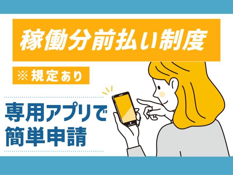 【保険制度】 雇用保険、労災保険、健康保険、厚生年金 待遇・福利厚生 【福利厚生】 ・社会保険完備 ・交通費規定支給(月上限3万円) ・有給休暇あり ・資格取得支援制度あり(規定) ・制服貸与 ・車通勤OK ・無料駐車場完備 ・自社正社員登用制度あり ・敷地内に喫煙所あり(建物の間にあり) ・食堂(飲食スペース)あり ⇒電子レンジ・冷蔵庫の利用可能! ⇒カップ麺やパンなどの自販機あり 【稼働分前払い制度あり/規定あり】 専用アプリで簡単申請! 「急な出費」や「生活の足しに」 など、活用しているスタッフ多数! 【ワンルーム寮対応可能】 民間のアパートを弊社で手配します! 面倒な手続きがなく引越しがラクラクです♪ 手配には2~3週間かかります。