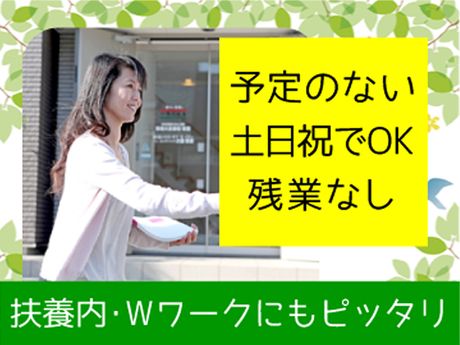 シフト・勤務時間 週1日以上、1日6時間以上 10:00~17:00(実働6h15m) ※残業なし 土日祝のみ(月2日~OK) ※「月3・4回位」「毎週末」などご希望を ご相談下さい。現在、月2日・月6~7日など のスタッフさんが活躍中です。