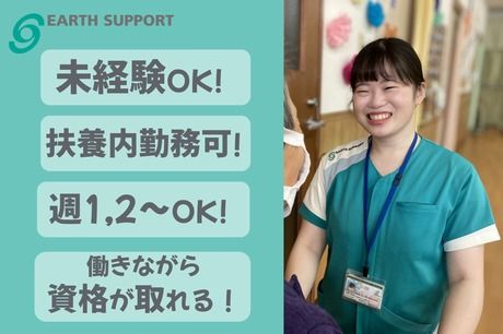 仕事内容 >>【アピールポイント】<< ◆【無資格・未経験、大歓迎!】 学歴・経験は一切不問! 必要なのは「やってみたい」気持ちだけ。 ◆【週1日~OKの希望シフト制】 あなたの都合を最優先します。 Wワークや家事・育児とも両立OK! ◆【夜勤は一切なし!日勤のみ】 8:30~17:30の決まった時間で、 生活リズムを崩さず働けます。 ◆【1日働いて、日給9,128円!】 週1回でも月4回で3.6万円以上! 効率よく収入をプラスできます。 ◆【土日祝は時給100円UP!】 週末だけ働きたい学生さんや Wワーカーさんにもオススメです。 ◆【安心のマンツーマン研修】 先輩が隣についてイチから指導。 「見て」「やってみる」で安心です。 ◆【20代~50代の主婦(夫)さん活躍中】 子育てが一段落した方や ブランク復帰の方も多数在籍中! ◆【「ありがとう」が嬉しい仕事】 お客様の「楽しかった」「また来るね」が 日々の大きなやりがいになります。 ◆【資格取得を会社がサポート】 「認知症介護基礎研修」など、 働きながらスキルアップも可能です。 ◆【正社員登用制度あり!】 「まずはパートから」も大歓迎。 将来のキャリアチェンジも応援します。 >>【仕事内容】<< デイサービスセンターに通われる お客様の「楽しい一日」を サポートするお仕事です。 介護といっても、 難しいイメージはありません。 お客様とお話をしたり、 体操やゲーム、カラオケなどを 一緒に楽しんだり。 あなたの笑顔と気遣いが 喜ばれる職場です。 「人と接するのが好き」 「誰かの役に立ちたい」 そんな気持ちがあれば大丈夫。 ━━━━━━━━━━━━━━━━━━━ 《具体的な業務内容》 ━━━━━━━━━━━━━━━━━━━ ◆お客様の見守り、お話相手 ◆レクリエーションの企画・運営 (体操、カラオケ、工作、ゲームなど) ◆入浴のお手伝い (着替え、洗体サポートなど) ◆食事の準備・サポート ◆トイレのお手伝い ◆送迎業務(運転できる方・歓迎!) ※運転が苦手な方はご相談ください。 乗車のみのサポート業務もあります。 入浴やトイレのお手伝いも ありますが、 必ず先輩が やり方を丁寧にお教えします。 未経験から始めたスタッフが ほとんどなので、 初めての方の不安な気持ちを みんなが理解してくれます。 安心して飛び込んできてください。 >>【研修制度】<< 「介護の仕事は初めて…」 「資格も経験もないけど大丈夫?」 そんな不安をお持ちの方もご安心ください。 アースサポートでは、 未経験の方を前提とした 研修制度を整えています。 ━━━━━━━━━━━━━━━━━━━ 《入社後の流れ》 ━━━━━━━━━━━━━━━━━━━ ◆入社オリエンテーション まずは座学で、介護の基本的な考え方や お客様と接する上での心構え、 安全にサポートするための知識など、 基礎の基礎から学びます。 ◆マンツーマンのOJT研修 必ず先輩スタッフが隣について、 一つひとつの業務を 「見て」「やってみる」を繰り返します。 あなたのペースに合わせて ゆっくり丁寧にお教えします。 不安なまま一人にすることはありません。 自信がつくまでしっかりサポートします。 ◆資格取得サポート 働きながら、介護の資格取得も目指せます。 契約更新時には「認知症介護基礎研修」 の受講が必要になりますが、 受講費用は会社がサポートします! さらに「実務者研修」の資格取得支援制度もあり、 あなたのスキルアップを応援します。 >>【職場環境】<< 活躍しているのは、 20代の学生さん(土日祝メイン)、 30代・40代でWワークをしている方、 50代で子育てが一段落した 主婦(夫)さんなど、 本当に幅広い世代です。 未経験からスタートした仲間が多いので、 新人さんが困っていると 「大丈夫?」「手伝おうか?」と 自然に声がかかる、 温かい雰囲気が自慢です。 社員・パートの垣根もありません。 「今日のレクリエーション、こんなのどうですか?」 「〇〇さん、今日はこんな様子でしたよ」 と、 みんなでアイデアを出し合い、 情報を共有しながらお客様の笑顔を作っています。 「人と話すのが好き」 「誰かに喜んでもらうのが好き」 そんな方なら、すぐに馴染んでいただけますよ。