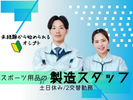 お仕事内容 <かんたん作業!スポーツ用品の製造スタッフ募集 > 〇スポーツ系のゴム製品を製造している工場です〇 未経験から始められるお仕事♪男女活躍中! 【お仕事内容】 ・ゴム製品の材料準備 ・機械へのセット&取り出し(脱着作業) → この作業をくり返すだけのシンプル作業!〇 〇製造未経験の方でも安心! 丁寧なサポートがありますので、すぐに慣れます♪ ・もくもく作業が好きな方 ・工場で働いてみたい方 ・長く安定して働きたい方にオススメです! 【職場環境】 〇男女比 8:2 男性が多い職場です。 〇黙々と作業がしたい方におすすめです 〇40代の方が多く活躍しています。 〇作業場に冷暖房完備です。 〇食事スペースあり 〇飲み物自販機あり 〇食べ物自販機なし 〇売店なし 〇ロッカーあり 夏場はアルフアとしての熱中症対策として、 スポーツ飲料の支給をしています。 【研修について】 ■入社後はOJTにて教育があります (1週間からひと月程度) 〇製品説明、現場の工程説明、作業のルール教育 〇作業内容の説明と実践教育 〇独り立ちが出来るまでは、 教育担当者や先輩社員が付きますので、 わからない事があればどんどん聞いてください。 また、常に周りには社員の方も 作業しているので、 手伝いが必要な時は、 遠慮なくお声がけください。 【ご応募問合せ】 電話番号:0287‐60‐7500 受付時間:平日 8:30~17:30 WEB24時間受付しています