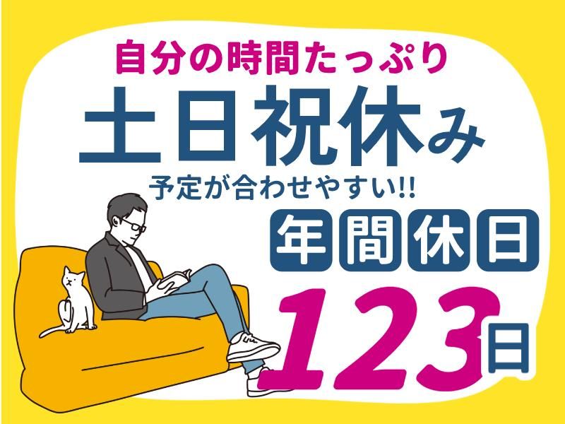 休日休暇 土日祝休み(会社カレンダーによる) *GW・夏季・年末年始の長期休暇あり *年間休日123日 *有給休暇あり