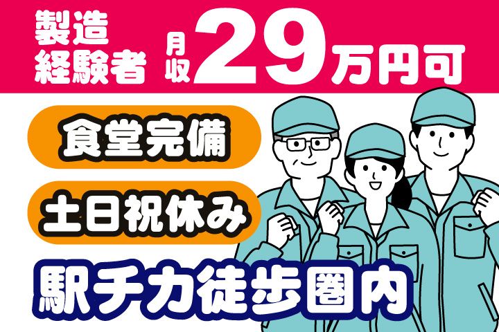 駅チカで通勤ラクラク!製造経験・重量物の取扱い経験が活かせる! 月収29万円可能!土日祝休み!