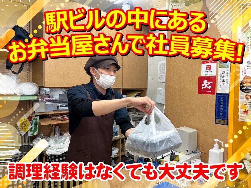 仕事内容 大阪府大阪市北区にある テイクアウト&配達専門の 『お弁当物語 大阪駅前店』で、 将来店長としてお店を 任せられる人材を募集しています。 20年以上地域に愛されてきたお店で、 「お客様に喜んでもらいたい」 「将来はお店を動かしたい」 そんな想いがあればスタートできます。 【具体的には】 ・手作り弁当の製造 ┗仕込み、日替わり弁当の調理(4種類/約100食) 電話注文対応、盛り付け、段取り管理 未経験でも約3ヶ月で一人前を目指せます。 ・スタッフ育成・シフト管理(店長候補業務) ┗入社半年~1年で、 スタッフの指導・シフト作成など 店舗運営を学んでいきます。 ・メニュー企画・売上アップ施策 ┗社員のアイデアで生まれた商品も多数! 挑戦できる環境です。 徐々に現場の業務に慣れてきたら、 「売上をどう伸ばしていくか」や、 「新しい企画や販促はどうしようか」と 店舗業務にも携わっていただきます。 この業界は思っているほど甘くありません。 だからこそ、現場の苦労を知っている 「飲食店長の実務経験者」を正当に評価し、 お迎えしたいと思っています。 ・即戦力採用 店長経験があれば、 すぐに現場をお任せします。 ・社長直伝 社長が横につき、 経営数値のイロハを直接教えます。 ・一生モノの力 単なる店長ではなく「経営者視点」が身につきます。 「ラクして稼ぎたい」ではなく 「本気で学び、将来を切り拓きたい」 そんな気概のある方、お待ちしています。 店長経験がない方も、 そのような思いがあれば大丈夫です。 【ここがポイント】 ① 店長を目指せる! 調理の経験があればスタートできます。 包丁さばきから丁寧に教えますので じゃがいもや人参など野菜を切ったり、 簡単なことからお願いします。 3つのフライパンを使って同時に だしまき卵を作れるようになれば、一人前! それまで、大体3ヶ月ほどです。 スタッフみんな最初は 「自分には絶対に無理、できない…」という 状態からスタートしています。 ②地域に愛される安定店 20年以上地域に愛され続けている当店は、 特にだしまき卵とからあげが自慢です。 地域の運動会など 自治会のイベントのときには、 多方面からご注文をいただきます。 お客様との距離が近く、温かい言葉をかけてもらえることも日常です。 地域にとって必要な存在になっている、 そう感じながら仕事をしていけるのも 当社ならではの強みです。 ③5名以上が独立開業した実績 過去には「お弁当物語」で経験を積み、 自分のお店を持つ夢を実現したスタッフもいます! その中にはパートさんから独立された方もいます。 「いつか独立したい」という 意欲のある方は大歓迎! 当社では、技術指導から経営ノウハウまで、 独立に向けた全面的なバックアップをお約束します。 ④“やってみたい” が形になる会社文化 ! 常に新しいことに挑戦し、成長し続けたい方、 ぜひ当社で一緒に働きませんか? 「こんなメニューがあったらいいな」 そんなあなたのアイデアを形にできるチャンスです。 当社の社員は、新しいことに挑戦するのが大好きです。 実際に、社員のアイデアから生まれた 「秋かおるごちそう弁当」も大好評! あなたの個性を活かしてみませんか。 【一緒に働くメンバー】 大阪駅前店は12名のスタッフが所属しており、 男女比は4:6。年齢層は20代~50代と幅広いです。 【先輩スタッフにインタビュー】 お弁当物語大阪駅前店で働く、新卒入社のAさん(25歳)と 中途入社のBさん(50歳)にインタビューをしました。 <Aさんにインタビュー> ――Aさんはなぜこの会社に入社を決めたのですか? 「大学で栄養学を学び、管理栄養士の資格を取得しました。 せっかく資格を取ったのなら、 それを活かして地域の方々に貢献したいと思い、 この会社を選びました。」 ――実際に働いてみて、どうですか? 「色んな年代の方が働いており、 みんな仲が良いので、職場はとても楽しいです。 分からないことがあれば、 気軽に先輩に相談できる環境もありがたいですね。 成長スピードも速く、入社してすぐから 責任ある仕事を任せてもらえるので、やりがいを感じています。」 ――この仕事の魅力は何ですか? 「『この間の日替わりランチ、美味しかったよ!』 そう声をかけていただいたメニューが 自分の考案したものだったとき、 最高に幸せな気分になります。 自分が作ったお弁当を食べて、 喜んでくれるお客様の笑顔を見ると、とても嬉しいです。」 ――今後の目標は? 「今は、栄養バランスの優れた お弁当を作るために、日々勉強しています。 ゆくゆくは、店長としてお店をまとめ、 もっと多くのお客様に喜んでもらえるようなお店を作りたいです。 そして、いつか自分のオリジナルのお弁当屋さんを開くことが夢です。」 ――最後に、これから入社を検討している方へメッセージをお願いします。 「この会社は、社員一人ひとりを大切にしてくれる温かい会社です。 年齢が近い仲間と一緒に、成長できる環境だと思います。 地域の方々