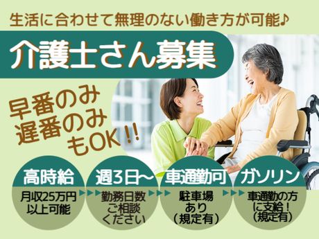 高時給1600円!日勤帯だけで月収25万円以上可能♪週3日勤務~|早番のみ・遅番のみ相談可|車通勤可