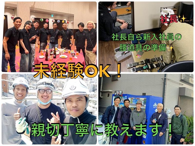 求めている人材 ◆経験不問・未経験者歓迎・経験者優遇 ◆長期歓迎 ◆第二新卒歓迎 ◆フリーター歓迎 ◎経験者は即戦力として優遇します 【こんな方を求めています!】 ◆建設業に興味がある方 ◆チームワークを大切にできる方 ◆真面目に仕事に取り組める方 ◆安全第一で作業できる方 ◆長期的に安定した収入が見込める仕事を探している方 ◆頑張りをきちんと評価してくれる会社を探している方 ※前職は、居酒屋スタッフ、コンビニスタッフ、アパレル販売、ファミレス店員、ドライバー、工業作業員などさまざま。異業種からの転職が多数活躍中です。
