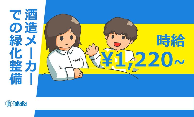 その他 どんなお仕事内容? 【酒造メーカー工場内での緑化整備・清掃】 ■日常業務 外でのお仕事がメインとなります。 ・工場敷地内の緑化整備(草刈り、芝の手入れ、樹木の剪定など) *草刈り機(手動、乗用型)などを使用します。 トータルマネジメントビジネスってどんな会社なの? 宝ホールディングスのグループ会社なので安心安定★ 【私達が大切にしていること】 (1) スタッフの気持ちを大切に スタッフが気持ちよく就業できる環境づくりを目指しています。 TMBではスタッフとの定期的な面談を通じて、スタッフが どんな事を感じ、どんなサポートを望んでいるのかを うかがい、サポートの充実につなげています。 (2) きめ細かなコミュニケーション 対面だけではなく、スマートフォンやパソコンを用いた リモート面談を実施し、きめ細かなコミュニケーションに つとめています。 その事によって、スタッフからは仕事の事、職場の事、 社会保険の事、休暇の相談、あるいはワークライフバランス についてなど、就業にかかわるさまざまな相談・疑問・悩み が寄せられています。 ご登録、相談のみでも大歓迎です(*^^*) お気軽にご応募くださいね! お仕事No:361