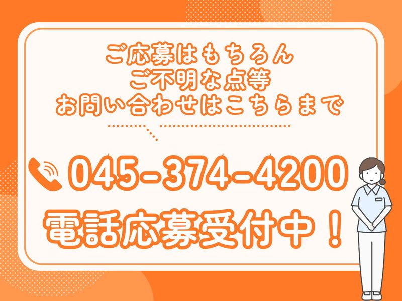 選考プロセス <応募・お問い合わせ> ■ネットからのご応募 [応募]ボタンより簡単に ご応募いただけます! ご応募より1~2週間以内に、 お電話・メールにて 折り返しご連絡をいたします。 お電話での応募も受付中♪ 045-374-4200まで「求人票を見た」と お問い合わせください。 ―応募後の流れ― ①応募後に、お電話・メールにて 日程確定のご連絡 ②軽い面談 →リラックスしてお越しください♪ ※履歴書(写貼)ご持参ください ③入社前3回の実習 →最終日にご希望を伺います ④採用 →勤務開始日は相談に応じます 【面接地・登録地】 面接地 / NPO法人はあと 法人本部 所在地:神奈川県横浜市磯子区久木町18-8