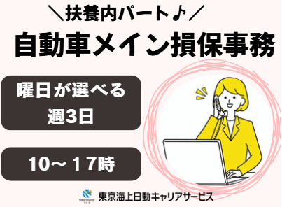 \扶養内*損保事務パート/ ◆曜日選べる週3日◆10〜17時&残業なし! └週4日や16時定時etc.働き方ご相談下さい☆彡