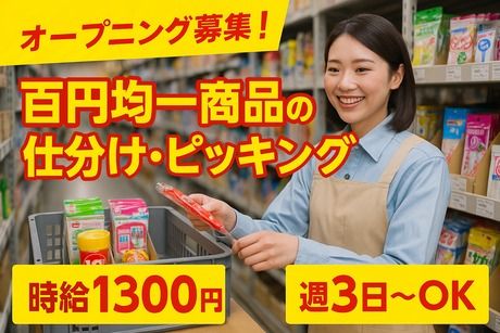 仕事内容 \百円均一商品の仕分け・ピッキング/ 【お仕事内容】 全国で人気の「百円均一商品」を倉庫内で仕分け・ピッキングするお仕事です。 ・商品ごとに棚からピックアップ ・注文ごとに仕分け ・出荷準備など \扱うのは軽い商品が中心!/ 100円ショップでお馴染みの雑貨や小物を扱うので、未経験でも安心です。 先輩スタッフが丁寧にサポートするので、初めての方も大歓迎! 【おすすめポイント】 ・新規スタートだからみんな一緒にスタート! ・週4日からOKでプライベートと両立しやすい ・カンタン&軽作業で安心 ・幅広い世代の男女スタッフ活躍中