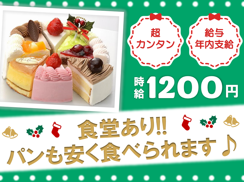 仕事内容 ✅年末繁忙期の短期アルバイト募集! ✅未経験でも安心の丁寧な指導体制 ✅交通費支給・食堂・駐車場完備 ✅期間満了後も長期勤務可能◎ 主にクリスマスケーキの飾り付けや、 お正月用お餅の製造補助のお仕事です。 年末の需要増加に対応するため、 12月31日までの短期間で 一緒に働いてくれる方を大募集中です✨ ・・*・・ ☆。・。具体的には。・。☆ ・・*・・ ◆生ケーキの製造補助 ◆お餅の製造補助 ◆その他製造に関わるサポート業務 ・・*・・ ☆。・。・ ・・*・・ ☆。・。・ ・・*・・ 未経験の方でも安心して働ける環境を ご用意しています。 何か分からないことがあれば、 社員がすぐに駆けつけてサポートします のでご安心ください♪ ゆっくり慣れていけるので、 落ち着いて作業すれば大丈夫ですよ◎ 期間満了後も引き続き勤務可能ですので、 長期的に働きたい方も大歓迎です! 友達同士の応募もOK! 即日勤務も可能です! ぜひご応募お待ちしております! *…・――――――――――――――・…* 当社では現在パン・洋菓子・和菓子・弁当 調理パン類といったイケダの製品を販売 している小売店と量販店の総数は 鹿児島・宮崎・大分の南九州エリアでは 約3000店に上ります。 新鮮な製品を新鮮なうちに食卓に 提供しています。 *…・――――――――――――――・…*