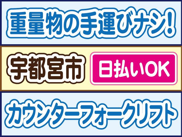 【宇都宮市平出/履歴書不要】 倉庫内フォークリフトスタッフ 資格を活かせる、日勤・土日祝休み