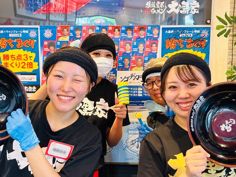 仕事内容 \未経験&バイトデビュー大歓迎!/ 元気と笑顔があふれる人気の飲食店、 家系ラーメン店で新しい仲間を大募集! 髪型・髪色・ネイルも自由だから、 あなたらしく働けます ラーメン店でのホール業務とキッチン補助のお仕事 券売機制なので、難しいレジ業務はありません! ◎ホール お客様のご案内、食券の確認、ラーメンの提供 テーブルの片付け など ◎キッチン・洗い場 簡単な調理補助(盛り付け、食材のカットなど) 仕込みの手伝い、洗い場(食洗機完備!) 未経験でも大丈夫! 最初は「いらっしゃいませ!」と元気に言えればOK! 先輩が丁寧にサポートするので、飲食店での 勤務が初めての方も安心です。 当店のポイント ◎自由なシフトで働きやすい! 週2日・1日3h~勤務OK!「学校終わりに」 「土日だけ」など、あなたの都合に合わせて働けます。 ◎しっかり稼げる! 土日祝は時給100円UP!深夜手当や昇給制度、 皆勤手当もあり、頑張りが給与に反映されます。 ◎絶品まかないが無料! ラーメンやチャーシュー丼など お店の全メニューが無料で食べられます! ◎オシャレを我慢しない! 髪型・髪色・ネイル・ヒゲもALL自由! ※規定あり ◎和気あいあいとした職場! 店長を中心に、学生から主婦パートさん、 中高年・シニア層まで幅広いスタッフが活躍中! [給与・手当] 時給:1,150円~1,563円 土日祝は時給+100円(時給1,250円) 深夜手当あり/昇給あり/皆勤手当あり 無料駐車場あり! ※基本時給は面接時にご案内します - - - - - - - - - - - - - - - - - - - - - - - - - - - - - - - - - - - - - - - - - - - - - 株式会社AO(あお)は、甲府市を拠点に 飲食・美容・不動産事業を展開する成長企業です。 2010年設立(旧:ダイタリビング)以来、 横浜家系ラーメン大黒家や豚彦、東京油組総本店、 イタリアンバルCONA、焼売のジョーなど、 地域で行列のできる人気店を次々と生み出してきました。 2023年には社名変更とともに美容室事業へも参入し、 現在約180名の従業員とともに さらなる飛躍を目指しています。 私たちが何より大切にしているのは、 【思い出に残る体験】をお客様に届けることです。 そして、最高のサービスを提供するためには、 まず働くスタッフ自身が幸せであることが 不可欠だと考えています。 自分の幸せはお客様の幸せとイコールであるという想いを 全社で共有し、スタッフ一人ひとりが 誇りと喜びを持って働ける、 温かくエネルギーに満ちた環境づくりを追求しています。 お店は単なる箱ではなく、 人と人が関わり合う生き物です。 安定した経営基盤と挑戦できるフィールドがある当社で、 あなたの個性を活かし、 山梨に新しい価値を生み出していきませんか。 熱意あるあなたとお会いできることを楽しみにしています。 - - - - - - - - - - - - - - - - - - - - - - - - - - - - - - - - - - - - - - - - - - - - - 最後までお読みいただきありがとうございます。 少しでも気になった方は、お気軽にお問い合わせください。 あなたにお会いできることを楽しみにしています!