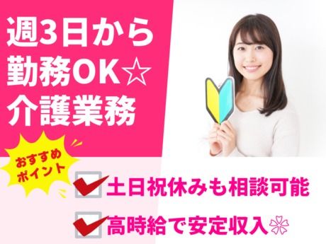 <★介護資格者大歓迎!>週3日勤務からOK♪土日祝休みも選べる職場環境♪