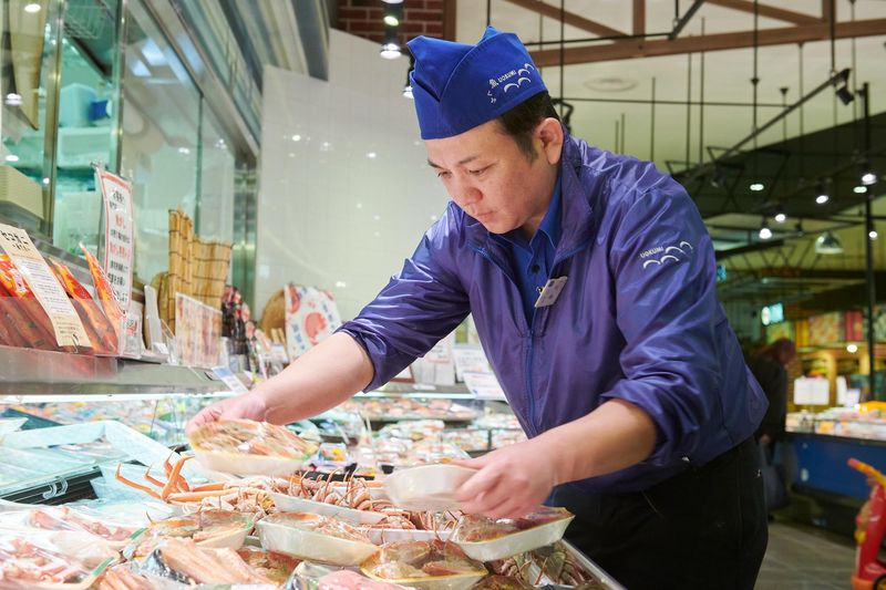 大丸心斎橋店内_魚屋の鮮魚加工スタッフ