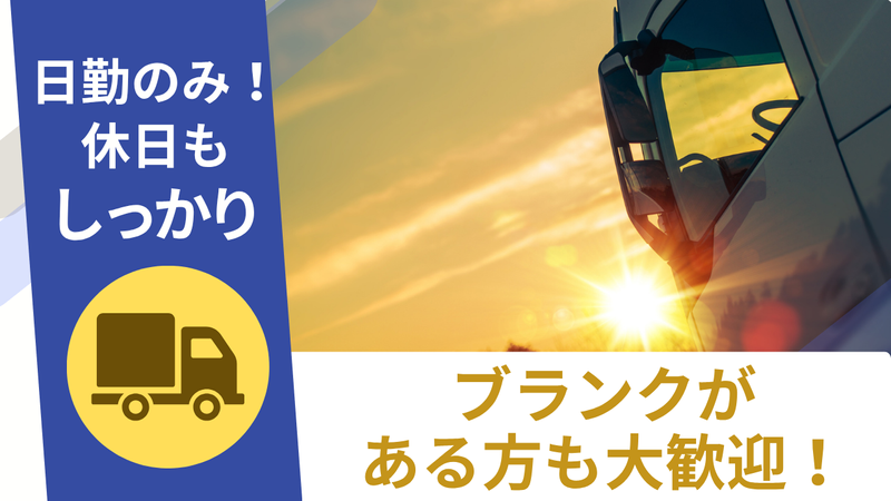 求めている人材 大型免許をお持ちの方 【こんな方にオススメ!】 ・収入を上げたい ・家族との時間を大切にしたい ・経験は浅いが免許を活かして働きたい