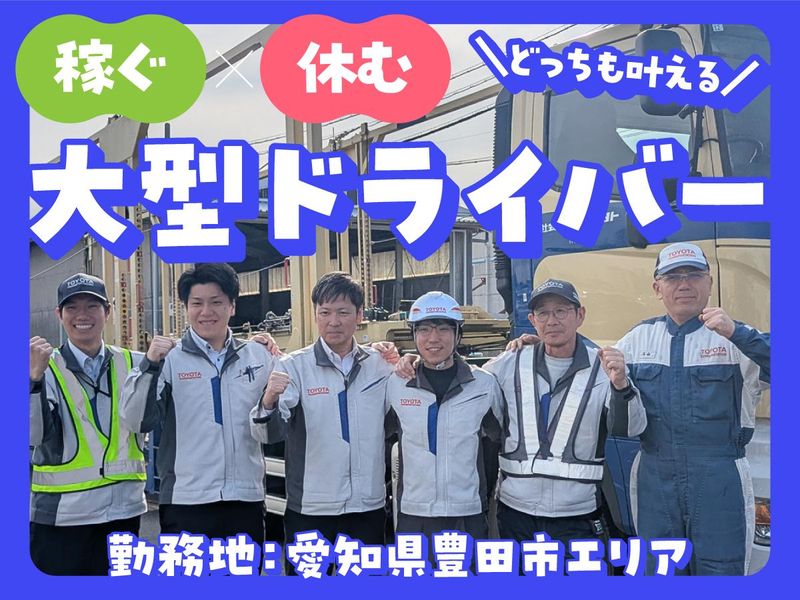 仕事内容 ✨️✨️✨️――――――――― 入社祝い金+継続報奨金 総額50万円あり! ―――――――――✨️✨️✨️ 【日帰りメインで長距離配送なし】 トヨタ自動車で生産された新車などを、 販売店や港までキャリアカーで運搬! <会社説明会も実施中!> 当社について詳しく知れるチャンス♪ 詳細は応募方法欄をご覧ください。 【具体的には】 ■車両の積み降ろし ■運搬先までの配送業務 工場から出荷された新車をキャリアカーに 積み、指定された販売店や港まで 運びます。 ――ここがPOINT✅ 配送エリアは各営業所で決まっており、 日帰り配送メインで長距離の移動はなし! ● 未経験から着実にスキルアップ! ● ………………………………………………… ▼入社~1カ月目 ・積み降ろしの練習、座学、キャリアカー 運転作業など、愛知県碧南市の研修施設で、 基礎から技術を身につけます。 まずは、安全に配慮しながら 練習用の車両でスタート。 ※社内試験を通過できるよう、 ルールや作業手順、 キャリアカーの走行練習など 技術を徹底的にレクチャーします。 ▼2カ月~5カ月目 ・同乗(添乗)教育・同行教育 配属先にて、先輩の同乗研修を通じて 業務の流れを学びます。 成長速度によりますが、同乗研修や同行研修 (別トレーラで先輩がつく)は2カ月程度。 しっかりフォローしますのでご安心ください! ▼6カ月目 ・ひとり立ち目安の期間 (技術試験と面接を実施) ▼7カ月目~(技術試験と面接の結果、正社員登用) 先輩や上司がサポートしながら指導をします。 わからないことがあればなんでも気軽に 相談しやすい環境です! <将来のキャリアパス> ゆくゆくは、ドライバーだけでなく 意欲や適性、実績により 管理者や指導者へ柔軟に ステップアップすることが可能です。 <例> ・国内拠点の運行管理や安全管理 ・パートナー会社を含めた乗務員の指導や 教育