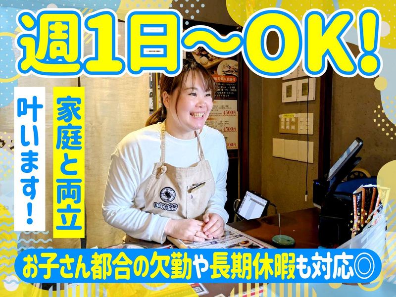 仕事内容 / 久しぶりのパート復帰も大歓迎★ 子育て中のスタッフも無理なく活躍中。 神戸市北区で人気のうどん屋です! \ * 週1日~2週毎のシフト!曜日固定もOK * お子さんの都合に合わせて休暇取得OK * 平日のみOK!急なお休みも対応可 * 30~50代主婦さん多数活躍中◎ * 食事補助ありで家計も助かる♪ ∴∵∴ ୨୧ ∴∵∴ ୨୧ ∴∵∴ ୨୧ ∴∵∴ <お仕事内容> 【ホール】 ・オーダーを聞く ・料理を運ぶ ・笑顔で接客♪ 【キッチン】 ・うどんや丼物の盛り付け 最初はホール業務からスタート! 慣れてきたらネギをのせたり 天ぷらを並べたりといった 簡単な調理補助業務もおまかせ! できることから少しずつで大丈夫です◎ 「キッチンだけ」「ホールだけ」 といった希望もOKなので、 調理が苦手・接客が苦手な方でも 始めやすい環境です♪ ∴∵∴ ୨୧ ∴∵∴ ୨୧ ∴∵∴ ୨୧ ∴∵∴ <いけや食堂ってどんなお店?> 地元で20年以上愛され続ける お洒落モダンなうどん屋さんです♪ 毎日お店で手打ちするもちもちで のどごしツルツルの太麺が自慢! きつねうどんやカレーうどんなどの 定番メニューはもちろん… ・博多牛ごぼううどん ・牡蠣のクリームうどん など変わり種もたくさん✨ 店長おすすめは 牛すじを5時間煮込んだ 「すじと揚げ茄子のぶっかけうどん」! そんなこだわりメニューがたくさんあるので うどん好きにはたまらないお店です♪ ∴∵∴ ୨୧ ∴∵∴ ୨୧ ∴∵∴ ୨୧ ∴∵∴ <お店の雰囲気はほんわか♪> 一緒にごはんを食べたり ドラマの話で盛り上がったり… 学生~主婦まで年齢関係なく仲が良く、 ほんわかあったか~い家族みたいな空気感です。 長年続けてくれる主婦パートさんが多く、 居心地の良さには自信あり◎ 子どもの発熱による急なお休みや、 「夏休みは子どもに合わせて1ヶ月丸ごと休み」 などもOKなので無理なく続けやすい環境です。 困ったことはなんでもご相談ください◎ ご応募お待ちしています! ★まずはお気軽にご応募ください★ TEL⏩078-581-0061 HP⏩https://rikimaru-kobe.jp/