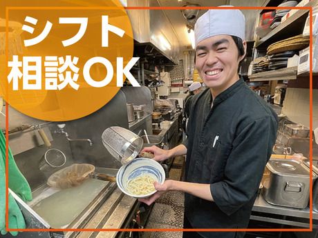 仕事内容 <ランチ勤務>17時まで!家事と両立できる働きやすい環境が◎ *\調理補助スタッフ積極採用中/* 9:00~17:00の間で1日3時間~勤務OK! 夕飯の支度までに帰宅したい方も 気兼ねなくシフトが組めるのがウレシイ♪ ご家庭と両立しながら働く主婦さん活躍中! < 主婦スタッフからのメッセージ > 社会復帰したくて短時間から働ける仕事を探していました。 接客が苦手なので、キッチンなら調理に集中できるし 家事スキルも活かせるのでいいかなって。 でも今では新しい環境でのびのび働ることや 幅広い世代のスタッフと接することができて 日々のストレス発散にもなっています! 適度に体を動かせて体力づくりにも最適です♪ *\自家製麺のうどん店での調理補助/* <調理補助スタッフ> ・食材のカット ・材料やタレの仕込み ・食器の準備 ・料理の盛付 ・食器類の洗浄 など、キッチンでの補助業務をお任せ 閉店時間の際はキッチンの清掃もお願いします。 <キッチンが初めてでも大丈夫!> 調理と言っても「切るだけ」「混ぜるだけ」「盛り付け」など 簡単な補助業務なのでスグに覚えられます! 久しぶりのお仕事の方も家でご飯を作る感覚で 少しずつ慣れていってくださいね◎ 何かあれば先輩がすぐ近くにいるので何でも聞いてください! 一人立ちまでしっかりフォローしますよ! *\未経験から始めたスタッフも多数活躍中!/* 万全のフォロー体制があるから 飲食店での勤務は未経験の方も お仕事にブランクがある方も 安心してスタートできますよ! 「最初はお試しで短時間」 「慣れてきたらフルタイムで」 なんてシフトの希望も可能なので 気軽に相談してくださいね♪ スタッフ同士、年齢関係なく 仲が良いのもお店の自慢です! だから連携もバッチリで 新人さんの育成もスムーズ! 最初は「家事感覚」で大丈夫◎ 日常の延長だと思えば始めやすいですよ。 ワイワイ賑やかなスタッフが新しい仲間を待ってます! *\こんなスタッフが活躍中!/* ・カフェ・レストラン・居酒屋などの 飲食店でアルバイトをしていた中高年の方 ・家庭での調理経験を活かしている 主婦パートさん ・ハローワークで求人を探していた 未経験から始めたフリーターさん ・オープニングスタッフとして 働いた経験がある学生さん など、いろんな方が活躍中! みんなで助け合いながら楽しく働いています。 仲が良くて活気ある雰囲気も注目ポイント♪ 失敗よりも良い面をたくさん見てくれるので 褒めてもらえることの方が多いです◎ *\お店について/* 讃岐の伝統的な技法で打つ手打ちうどんと、関西風の優しい出汁。 うどん本来の美味しさを楽しめるお店です。