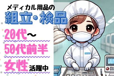 仕事内容 手のひらサイズの医療関連の製品組立・検品のお仕事♪ 扱うのは病院で使用される小さな製品です。 部品を順番に組み立てていったり、検品したりするシンプルな作業です。 初めての方でも安心して働けますよ! 作業のイメージ お菓子の箱詰めをするようにパーツを手際よく並べたり、 小さなアクセサリーを丁寧に仕上げたりする感覚。 モクモクと集中して取り組める作業です。 未経験歓迎!安心のサポート体制! 作業の流れや手順は、最初にしっかりと教えてもらえます。 一度覚えれば繰り返し行う作業なので、1~2日でコツを掴むことができます。 慣れるとどんどんスムーズに進められるようになるので、集中して作業を楽しめますよ♪ 働きやすい環境が魅力! 冷暖房完備の快適な作業場で、多くの女性スタッフが活躍中! 負担の少ない作業なので体力に自信がなくても安心です。 「細かい作業が好き」「コツコツ集中して取り組みたい」そんな方にピッタリ! お気軽にご応募ください♪