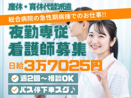 急性期の病棟での夜勤のお仕事♪日給3万7025円!実動14時間45分|週2回~|バス停より徒歩1分
