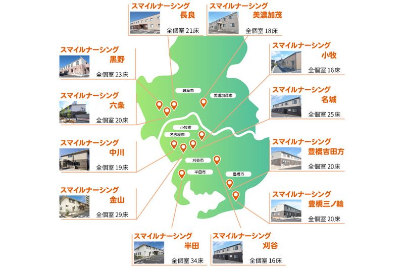 【アピールポイント】 【スマイルナーシング 長良】 地域の皆さまにご支援いただき、愛知岐阜に12施設運営のスマイルナーシングです^_^