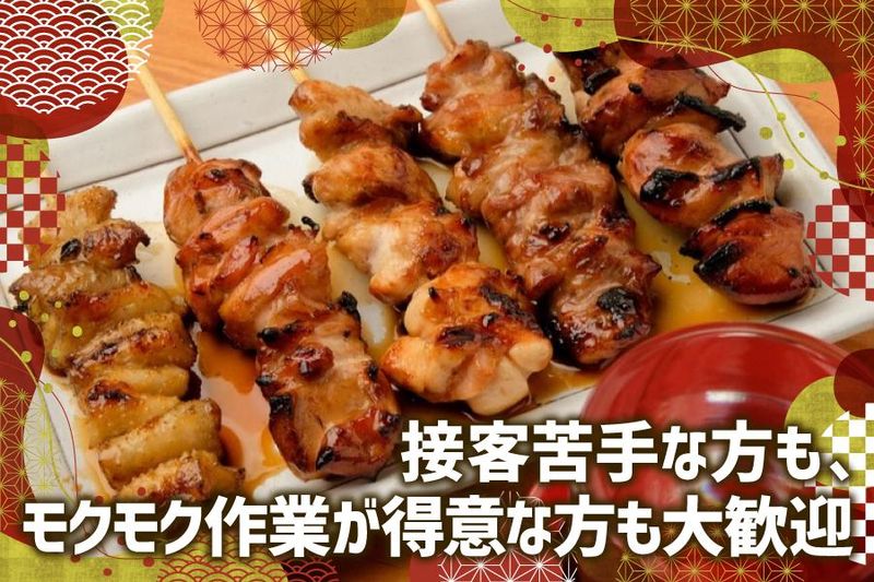 仕事内容 ◆◇◆土日祝勤務できる方積極採用中◆◇◆ ✅週2日~、1日4h~OK! ✅主婦さん、学生活躍中! ✅土日両方勤務できる方は土日の時給50円UP! 焼鳥店staffとして、アットホームな焼鳥店での業務をお任せします。 主な仕事内容は、簡単な調理補助やホール、テイクアウトの販売業務です。 焼鳥の串刺し作業や焼き作業などもお願いすることがあります。 接客が少し苦手な方でも、モクモクと 作業することが得意な方にも向いています。 常連さんが多数いるお店で、 一緒に働くスタッフと楽しく 働きやすい環境を作っていきたいと思っています。