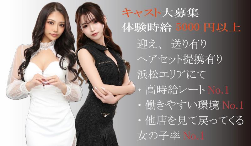 JR浜松駅スグ☆落着いた大人の女性が輝くキャバクラ☆浜松TOPクラスの待遇でお出迎え!送迎あり・託児所利用OK・美容エステ代免除