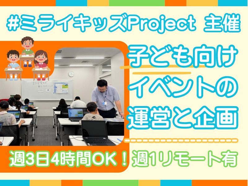 仕事内容 ミライキッズというNPOが主催する子ども向けイベントの企画・運営をお任せします! 公式サイトはこちら▼ http://miraikids2020.com/ 全国展開するNPO法人の教育事業に、FC加盟店として参加。地域企業から小学生新聞への協賛金を集め、 その収益で子どもたちに無料で学びの機会を届ける、SDGsを実現する仕組みです! イベント時には実際に子どもたちの笑顔を間近で見ながら、自分の意見が形になった瞬間を見れる・達成感を味わえます◎ 【具体的な業務内容】 [1]教育委員会との打ち合わせ ■体験会の後援を得るための連絡・調整 ■実施後の報告書送付 [2]小学生新聞の発行サポート ■小学生新聞の配布準備 ■協賛企業の開拓・提案 [3]会場設営・体験会の実施 ■会場準備、片付け ■参加親子の対応 [4]事務作業 ■Excel・Wordでのデータ入力 ■アンケート集計、報告書作成 【主な実施イベント】 ✅プログラミング体験会 →マウスの使い方と簡単なゲームに挑戦 ✅体力測定会 →全国2万人の小学生から録った体力測定のデータと比較できる運動イベント ー ✨選べる働き方 ー ◎9時~13時まで一気に勤務して家に帰り サクッとお昼。保育園にお迎えへ! ◎9時~15時勤務だから、お昼を取りつつ 午後の2時間集中!帰りにお買い物へ 週3日、1日4時間~OKなので、プライベートの予定を大事にしながら働けます◎ ※月曜・水曜は会議のため出社必須 ・月曜:埼玉・沖縄合同ミーティング ・水曜:埼玉チームミーティング 進捗共有や次の企画を考える時間です! ー ✨地域の子どもを守り、育てる ー 「地域の子どもの安全を守りたい」という想いから、防犯カメラの設置事業を主軸に経営の基礎を築いてきた株式会社ニューゲートの新事業です。 まずは、内容が決まっているイベント運営をお任せしますが、新しい企画も大歓迎! 「こうしたらもっと子どもたちが喜ぶのでは?」「こんな企画はどうだろう?」そんな提案を全力で面白がってくれる仲間と、アイデアをカタチにしていける環境です♩ 【なぜこの事業が必要なのか?】 プログラミングは必修科目になったものの、小学校では「教えられる先生がいない」ことも。体育でダンスが導入されたのに講師が足りない——それと同じ状況が、今プログラミング教育で起きています。 私たちは、この社会課題を「広告×教育」で解決。貧富の差なく、すべての子どもたちに学びの機会を届けようと日々より良い方法を模索中です。 将来的には、行政へ教材の無料提供や講師派遣を行い、地域の教育インフラを支える存在を目指しています! 【部署を超えた一体感】 防犯カメラ事業の先輩スタッフも、休日に体験会や測定会にボランティア参加してくれています。 「たまに子どもと触れ合うのは新鮮で楽しい」「普段の仕事とは違う充実感がある」 そんな声が上がる、温かい職場です* 【将来的には...】 ✨埼玉×沖縄!子どもたちの交流企画 ✨FC管理業務 ✨希望者は沖縄への出張も可能 ✨SNS(InstagramやFacebook)情報発信 現在、埼玉と沖縄の運営を担当しており、新たなエリアへの展開も計画中。まだ形になっていない事業だからこそ、あなたのアイデアが未来を創ります!