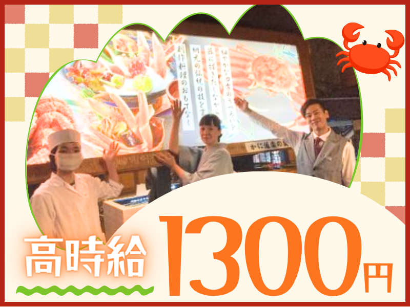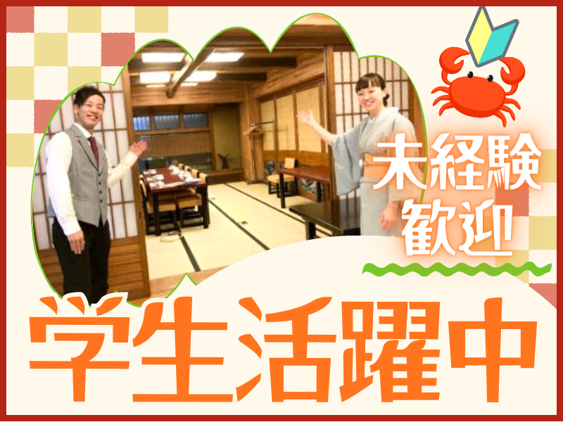 仕事内容 ⭐ディナータイムに働ける方大募集⭐ 学生さん&フリーターさん活躍中! ============ 和装でのお仕事の魅力✨ ============ *言葉遣い *美しい所作 *着物の着方 そして何より—— ✨“笑顔”でお客様をお迎えする心✨ プライベートではなかなか学べないことが、 働きながら身につきます! 大阪の老舗和食店「かに道楽」で 一緒に働きませんか? 【お仕事内容】 ・テーブル片付け、セッティング ・お客様のご案内 ・ドリンク作り ・オーダー取り ・コース料理配膳 など ✅レジ業務や調理業務と しっかり分業しているため 接客に集中できます。 ✅新人さんはまず「団体席」などの 開けた階からスタート。 徐々に個室接客にもチャレンジ! ‐‐‐ ✨和装について✨ ・最初は 二部式着物(上下分かれた簡易着物) からスタート! ・慣れれば15分ほどで自分で着付け可能に◎ (最初は30分ほどかかります) 着付けや立ち居振る舞いも 社員が丁寧に教えてくれます! ✨サポート体制✨ 1日あたり35人が働いている職場で、 新人さんには必ず社員が付きます。 ・若い学生さんには、今年入社した20代の社員が担当 ・主婦さんには、ベテラン社員がしっかりサポート 近い立場の先輩が教えてくれるので安心です♪ ✨ここが魅力✨ ✅未経験歓迎! ✅学業・Wワークと両立OK(週2日~・4h~) ✅金曜勤務できる方は特に歓迎! ✅現在【30名採用予定】の大型募集! ✨利用される方は✨ お客様は近隣にお勤めの常連様や ファミリー層、インバウンド需要もあり、 小さなお子様からご年配まで 幅広い年齢層の方が来店されています。 ・語学力を生かしたい ・礼儀作法を学びたい ・人と接することが好き など、出会いを大切にされる方に ピッタリの職場ですよ♪ ✨学業との両立可能!✨ 今回、夕方メインの 配膳スタッフさんを募集しています! 週2日・4h~勤務OKなので 部活やサークル、テストや学校行事、 趣味など自分の時間を優先できます♪ 授業が終わる時間に合わせて働きたい方、 夜からのバイトに間に合うよう働きたい方も まずはお問い合わせくださいね◎ ✨スタッフインタビュー✨ 着物を着ている時の所作や歩き方、 言葉遣いに至るまで、 一つひとつ丁寧に教えてもらえます。 「こういう時はこう伝えると良いんだ」 という学びになり、毎日が発見の繰り返し! 新鮮だなと感じています。 「バイトを始めて変わったんじゃない?」 と親から言われることも…♪ 仕事を通じて自分の成長を実感しています。 (23歳女性 フリーター) ✨接客スタッフのやり甲斐✨ 働くことはお金を稼ぐだけではありません。 ・学校や日常生活では出会えない人とのつながり ・マナーや礼儀の習得 ・自分の成長を実感できる瞬間 面接では、希望の働き方や稼ぎたい金額、気になることも何でも相談できます。 あなたにお会いできるのを楽しみにしています♪