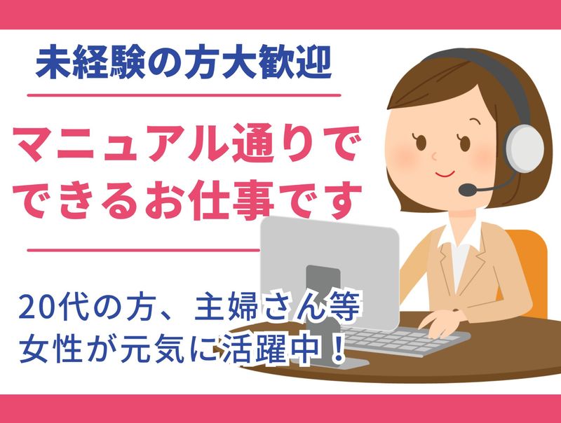 求めている人材 ●簡単なPC操作(文字入力等)さえ できればOKです!! ・土日勤務出来る方歓迎 ・コールセンター未経験歓迎 ・お勤めにブランクがある方も歓迎 ・フリーター歓迎 ・既卒、第二新卒歓迎 ・正社員希望者のチャレンジ応援 ・主婦さん活躍中 ・学歴、年齢、性別不問 ・土日勤務できる方歓迎