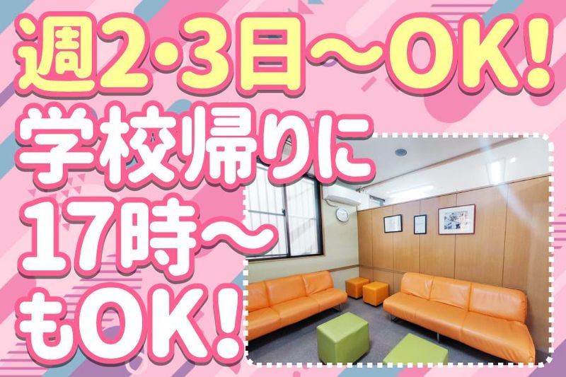 勤務時間詳細 午前▶9:00~12:00 午後▶15:00~19:00 ※土曜は 9:00~13:00 のみ ◇週2,3日~OK! ◇「平日のみ」「午前のみ」 「午後のみ」もOK! ◇勤務時間は相談可能です! 「学校終わりの17時~勤務したい」 「短時間勤務したい」等もご相談ください◎ 働き方はいろいろ(^^)/ 例えば… 学生Aさん:平日17時~の短時間勤務+土曜 主婦Bさん:午前週1回と午後週1回 主婦Cさん:午前午後通し週1回・午後週1回 <ライフスタイルに合わせて働ける!> お子様の急な発熱や試験前の休みなど シフトの相談は柔軟に対応します◎ ご自身の私生活に合わせた働き方を、 面接時にご相談くださいね。 基本、曜日固定ですが、 子供の学校行事や急な発熱などによる お休みの融通はきいてくださる先生です!byスタッフ
