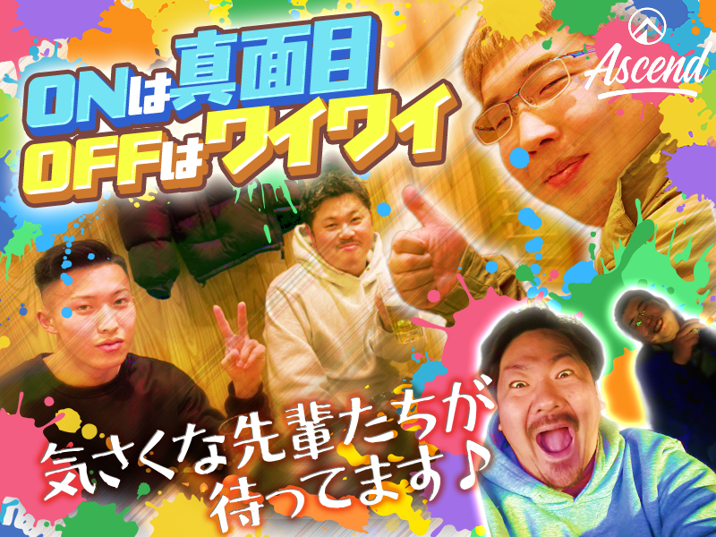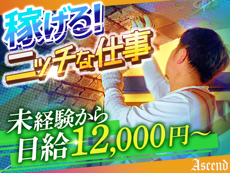 仕事内容 「まだ、やりたいことが見つからない」 「とりあえずガッツリ稼げる仕事がしたい」 そんなきっかけで全然OKです! ✅働きながら『夢』さがそう  ̄ ̄V ̄ ̄ ̄ ̄ ̄ ̄ ̄ ̄ ̄ ̄ ̄ まずは現場で安定して稼ぎながら、 ゆっくりこれからのことを考えればいいよ◎ ✅バイトから『社長』も目指せる  ̄ ̄V ̄ ̄ ̄ ̄ ̄ ̄ ̄ ̄ ̄ ̄ ̄ ̄ ̄ もしこの仕事が合っていれば、 社長直伝のノウハウで「経営者」を目指す道もアリ! ⭐社長は… 「関わる人を自分以上に幸せにしたい!」 という純粋な情熱で動いている人。 経歴とか過去とかは気にしません。 あなたの「これから」を全力で応援してくれます! ══【仕事内容】═══════════ マンションやビルの壁・床にタイルを張り、 建物をきれいに仕上げる仕事です。 主な仕事は… 下地作り、タイル張り、仕上げの目地詰めなど。 ★先輩がマンツーマンで教えるので、 未経験でもご安心を! 働きながらスキルや知識が身につきますよ◎ ════════════════════ ╭━━━━━━━━╮ ☆ ウチで働く魅力 ☆ ╰━━v━━━━━╯ ⏩未経験でも日給1万2000円〜! └できることが増えればどんどん昇給◎ ⏩「怒らない」ポジティブな社風! └失敗しても大丈夫!「どうすればできるようになるか」を全員で考えています☆ ⏩将来『社長』も目指せる! └希望や能力次第で営業や管理業務へステップアップが可能! そしてゆくゆくは独立して『社長』になるチャンスも! ╭━━━━━━━━╮ ☆ 少数精鋭のチーム あなたもすぐに主役 ☆ ╰━━v━━━━━╯ 現在、社員は4名。 少人数だからこそ、 お互いが助け合うことを大切に、 良い関係性で仕事をしています。 社長含め気さくで面倒見のいい先輩ばかり! きっとあなたもすぐに馴染んで いい仕事ができますよ◎ ー <☆ 社長よりメッセージ ☆> まずは「仕事に慣れること」 「生活を安定させること」 から専念してもらえればOK。 うちで働きながら、得意なことや 自分に合う道を見つけていってもらえたら嬉しいです。 希望者には私が経営ノウハウを直接伝授。 独立できるレベルまで本気で育てますよ! 少しでも気になったら、 一度会ってざっくばらんに話しましょう。 あなたの応募を待ってます! ー