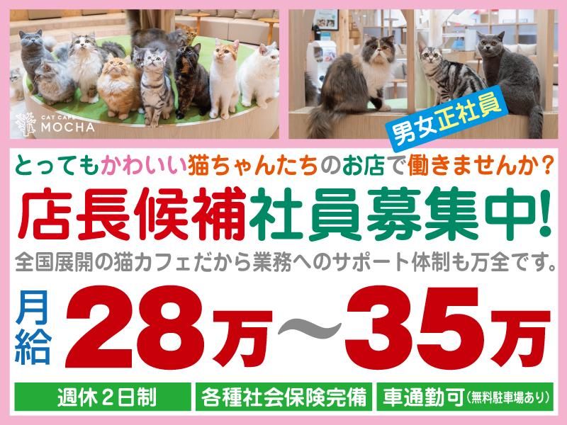 仕事内容 【おすすめしたいポイント】 ・未経験歓迎 ・月収28万~35万! ・車通勤可(無料駐車場あり) ・週休2日制 ・昇給あり お客様への接客や猫たちのお世話を中心にお任せします。 業務内容… ・店舗運営全般 ■ ↓猫カフェMOCHA 公式HP ■ http://catmocha.jp/