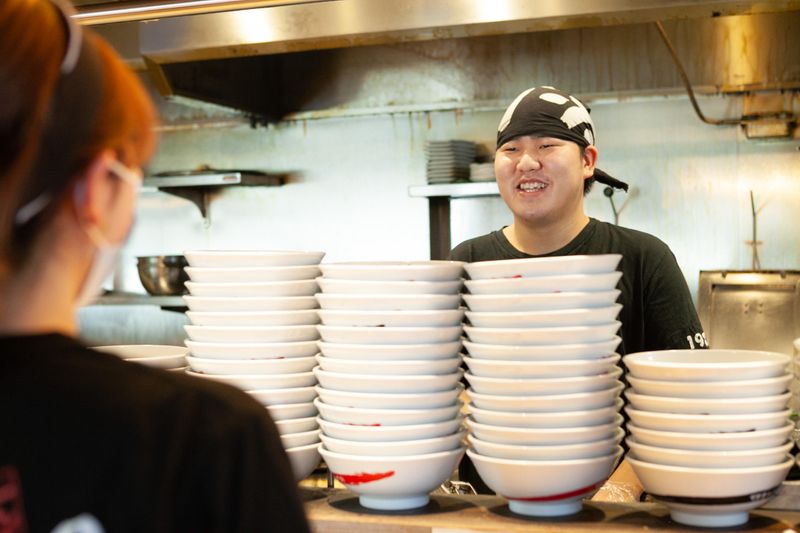 勤務地 原宿駅と北参道駅の間にある原宿店。20年以上に渡り近隣のお客様にご愛顧頂いております。2016年7月にそれまでの千駄ヶ谷から現在の場所に移転をしました。キャンプをイメージし、たくさんの木材を使った店舗です。ラーメンと共に店内の雰囲気も一緒に楽しんで頂ければと思います。