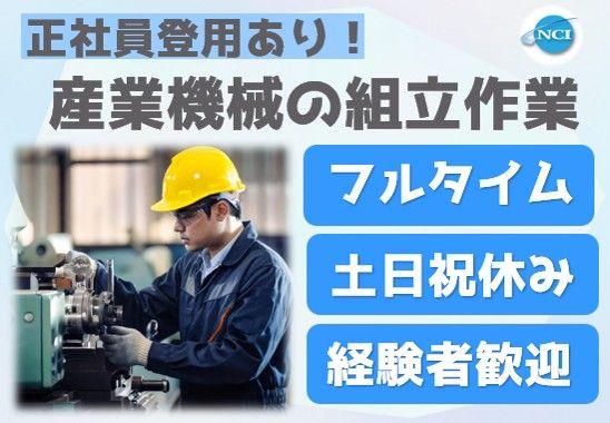 仕事内容 ■□■ 産業機械の組立 ■□■ 製造現場向けに加工機械をオーダーメイドで一貫製造している会社の工場内で機械の組立をお願いします! ・図面を見ながら1つの機械を組立 組み立てる産業機械は大きいものがほとんど! 毎回違った機械の組立をおこなうので組立て方も機械によって毎回違います! \\ 正社員登用あり // 派遣からスタートし、ゆくゆくは正社員になれる!☆☆ 長期で安定したお仕事をお探しの人にピッタリ! ◯知識や経験が活かせる!! 産業機械に携わった経験のある方を募集しています! 経験を活かしてお仕事しませんか! ◯嬉しい土日祝休み♪ 土曜日は出勤日がある月もありますが基本土日祝お休み♪ 予定も立てやすく家族との時間もしっかり作れます♪ お盆やお正月の連休もしっかりあるので嬉しいですね♪ ★―★ NCIのアピールポイント ★―★ ・担当営業がつき就業を徹底サポート! ・社会保険完備!即日加入可! ・自分にあったお仕事が見つかる! ・年4回の研修会でキャリア形成も応援! ・記念日にあわせたプレゼントあり! ★―★ ★―★ ★―★ ★―★ ◯◯●ここもチェック!●◯◯ ◆主婦・主夫歓迎 ◆フリーター歓迎 ◆ブランクOK ◆即日勤務OK ◆家庭都合休OK ◆学歴不問 ◆正社員登用あり ◆40代以上応募可 ◯◯●◯●◯◯●◯◯●◯●◯◯