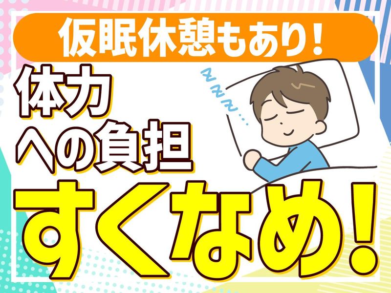 勤務時間詳細 実働時間:1日あたり10時間 〜 16時間 平均勤務日数:1ヶ月あたり4日 〜 8日 【月曜日~土曜日】 17:30~8:30(実働10時間) 深夜手当:2時間 拘束時間:15時間 【日曜日】 8:00~8:30(実働16時間) 深夜手当:2時間 拘束時間:24時間 ※週1~2回の勤務から相談に応じます